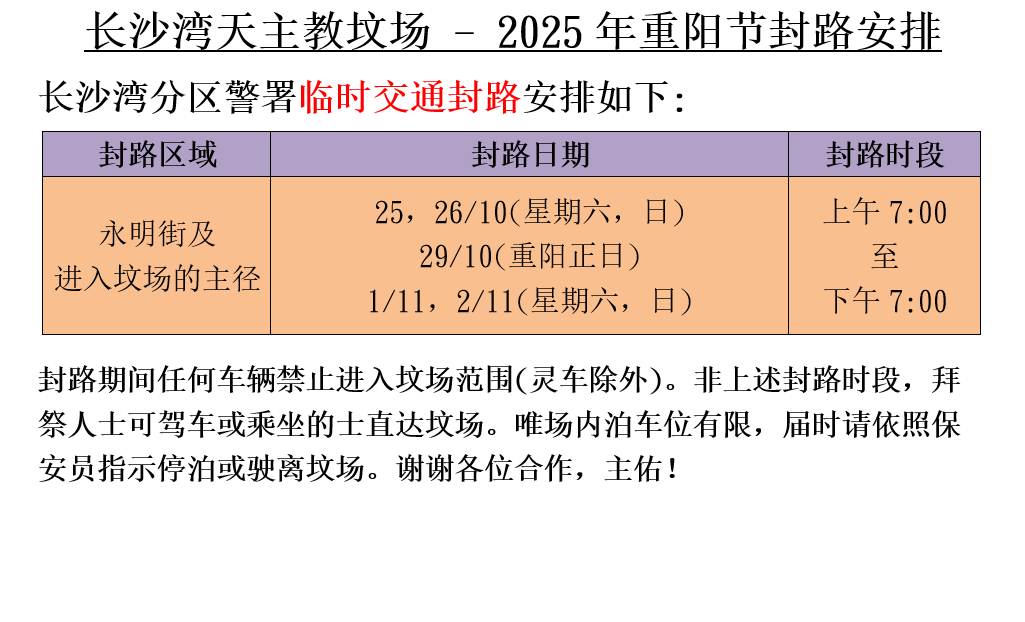 长沙湾天主教坟场 - 2025年清明节封路消息[copy]